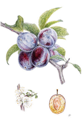 In de oranjerie zijn voornamelijk oude fruitrassen, kruiden en groenten afgebeeld in aquarel, kleurpotlood, grafiet of gemengde technieken.